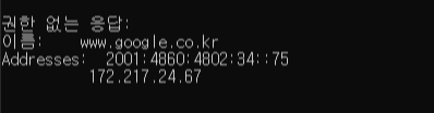 크게 [서버]에서 로컬PC의 기본 DNS 정보와 [권한 없는 응답]